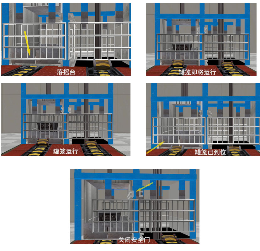 【性能特點】 動畫展示關門、開門、落搖臺、起搖臺、罐籠到位、罐籠下降等操作; 統計進罐籠人數,罐籠超員報警; 檢測到位狀態,不到位動畫提示禁止啟動。